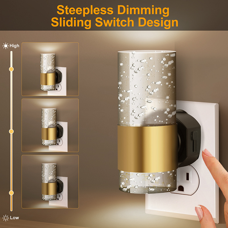 The modern night light has a sliding dimmer switch on the side of the plug base, allowing you to easily adjust the brightness to suit different settings. Whether you need a gentle glow for the bathroom or a brighter light for the hallway, this night light plug into wall can be customized to meet your needs.