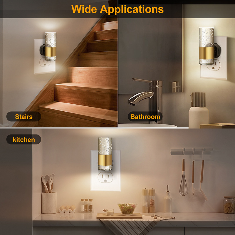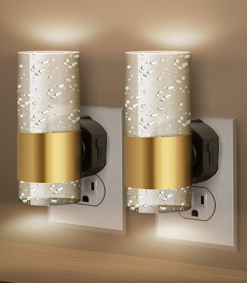 Golden Luxury Plug in Dimmable LED Night Light Acrylic Nightlight with Adjustable Brightness 3000K with Dusk to Dawn Sensor