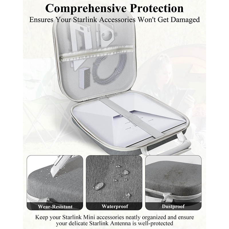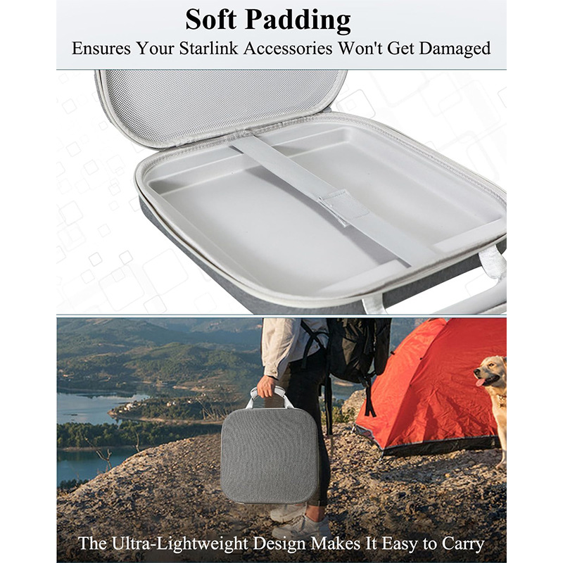 【Durable & Protective】Made with a tough nylon exterior, EVA middle layer, and soft velvet interior, this case protects your Starlink Mini from scratches, moisture, and dust. It includes a sturdy PVC rubber handle and smooth, durable zippers for everyday use.