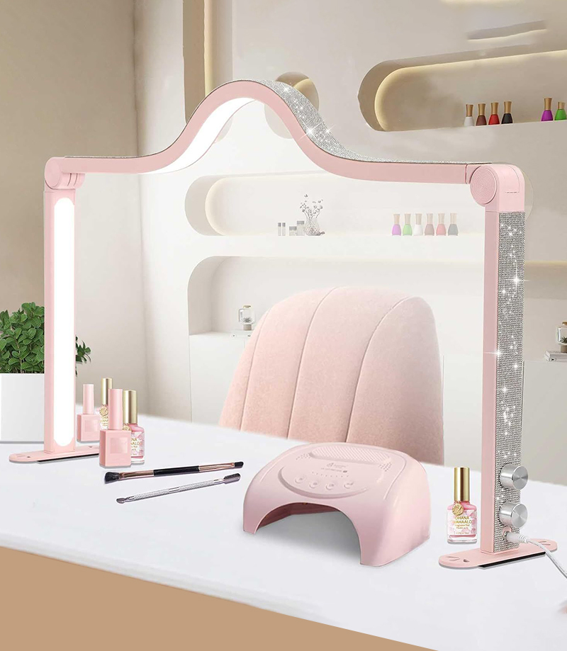 [Foldable Nail Tech Lamp] The nail desk light can be folded and stored without taking up too much space. We have equipped it with a phone holder, which can easily record the moment of your manicure so that you can share it on social media.